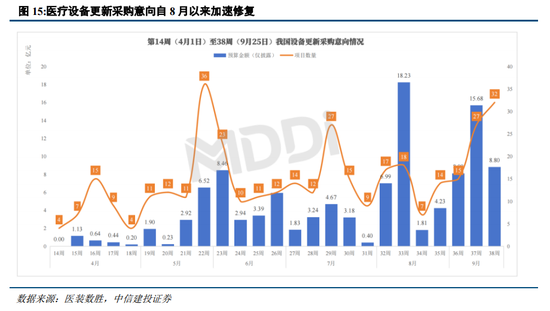 5月国度发改委等部门即发布《对于印发鞭策医疗卫生范畴开导更新实施决策的告知》,明确医疗卫生范畴开导更新所需资金安排,主要以“中央预算内投资或超长久国债”+“地方财政资金”的样式为主。据医装数胜整理分析,扫尾9月底,医疗开导更新批复表情已特出1000个,预算总金额摧毁412亿元,表情批复主要汇集于5-6月份;8月以来前期大批获批的拟建表情开动大限制落地,寰宇各地纷繁开动发布开导更新采购意向,且采购限制愈发雄伟,扫尾9月底,预算总金额超110亿元,表情总和为372个。