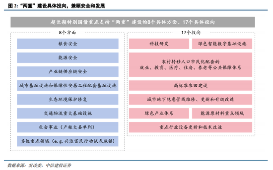 政策表态25年将加力因循“两重”建设,新式城镇化或是重心地方。“两重”建设是指国度首要计谋实施和重心范畴安全才调建设。2024年两会冷漠,从本年开动拟畅达几年刊行超长久荒谬国债,专项用于国度首要计谋实施和重心范畴安全才调建设(“两重”),具体包括8个方面、17个具体投向,主要触及科技研发、绿色智能数字基础方法、农村滚动东谈主口市民化配套的工作/教悔/医疗等全球保险体系、高圭表农田建设、城市更新、能源原材料重心范畴、重心行业开导更新和本事篡改等地方。发改委自本年2月开动就已屡次组织各地方筹商部门梳理储备2024年能开工建设的超长久荒谬国债表情,万亿超长久荒谬国债于5月起络续刊行、提供资金因循,扫尾8月前两批“两重”建设表情清单下达。10月8日国新办新闻发布会先容,1万亿元的超长久荒谬国债里用于“两重”建设的7000亿元已一齐下达到表情,表情开工率是50%;同期,将在年内提前下达来岁1000亿元中央预算内投资规划和1000亿元“两重”建设表情清单,因循地方加速开展前期责任、先行开工实施;25年将连续刊行超长久荒谬国债并优化投向,加力因循“两重”建设。经梳理,续建基础方法、农业滚动东谈主口市民化(重心是平方高中建设与病院病房篡改)、高圭表农田建设、地下管网建设、城市更新等范畴增量资金需求较大。