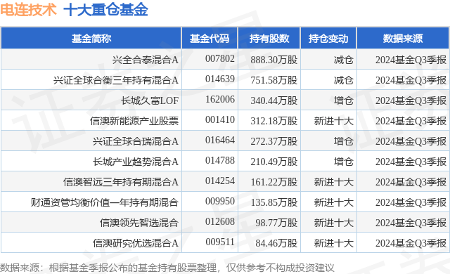 把柄2024基金Q3季报公募基金重仓股数据,重仓该股的公募基金共62家,其中捏罕有量最多的公募基金为兴全合泰混杂A。兴全合泰混杂A现在领域为46.64亿元,最新净值1.2777(1月13日),较上一交往日下落0.41%,近一年上升8.87%。该公募基金现任基金司理为任相栋。任相栋在职的基金居品包括:兴证人人合衡三年捏有混杂A,处分时候为2022年1月13日于今,时间收益率为-22.37%。