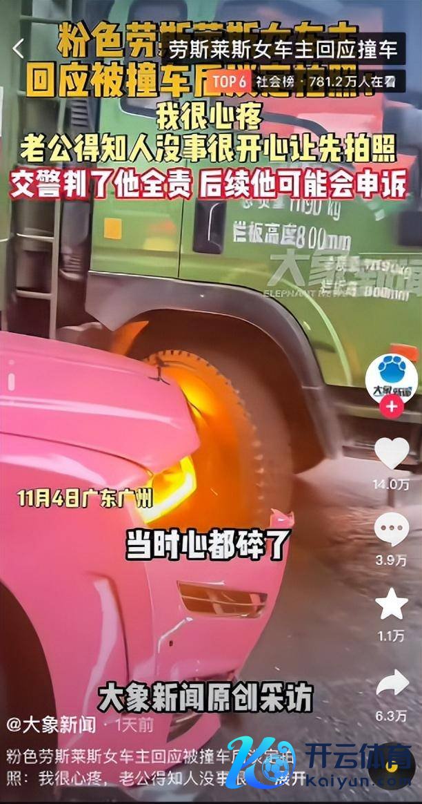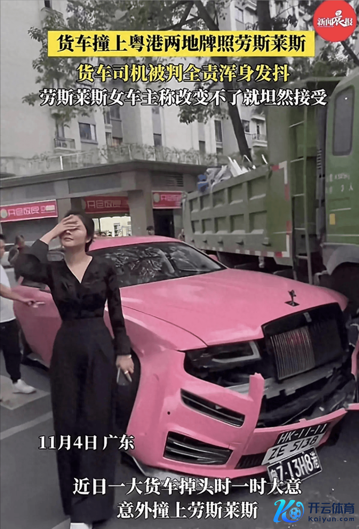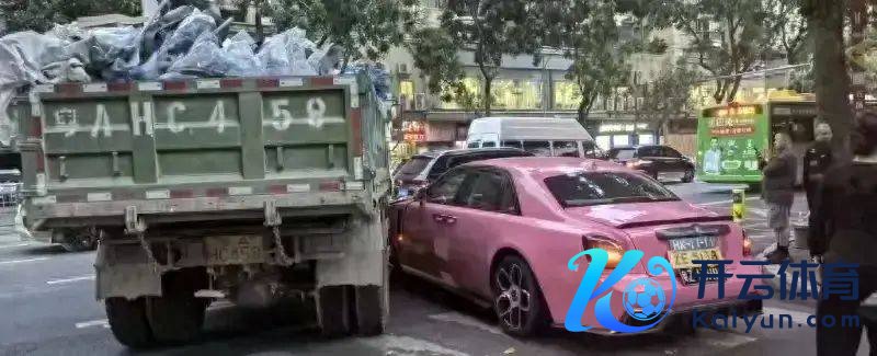一辆大货车撞上了一辆粉色劳斯莱斯,要津是粉色的劳斯莱斯如故港粤两地车牌,这重叠在一谈还不得“富得流油”啊!